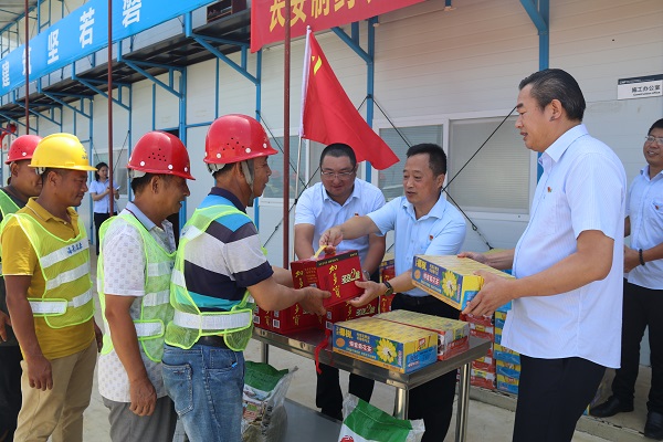 揭牌儀式結(jié)束后,結(jié)合“送清涼,戰(zhàn)酷暑”省建設(shè)工會(huì)在行動(dòng),傅愛萍副書記與長(zhǎng)安制藥黨支部書記汪立冬、萬泰工會(huì)主席顏利代表省建設(shè)工會(huì)和海南萬泰工會(huì)為項(xiàng)目工友送上了一份份防暑降溫慰問品,為辛勤堅(jiān)守在一線工作崗位上的勞動(dòng)者帶來絲絲“清涼”,也表達(dá)了對(duì)一線職工的關(guān)懷。