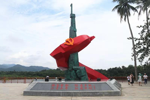 1927年,椰子寨戰(zhàn)斗拉開了全瓊武裝總暴動的序幕,開啟了瓊崖革命武裝斗爭“二十三年紅旗不倒”的偉大征程。在原椰子寨戰(zhàn)斗登陸渡口處已經(jīng)建起紀念廣場,由一面旗幟和長槍組成的椰子寨戰(zhàn)斗主體雕塑總高度9.23米,寓意紀念9月23日這個不同尋常永遠值得紀念、載入史冊的日子。