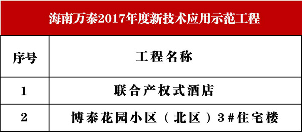 近日,海南省住房和城鄉(xiāng)建設廳發(fā)布公告,公布了2017年度海南省建筑業(yè)新技術(shù)應用示范工程立項評審結(jié)果,共計24項工程獲評新技術(shù)示范工程。其中,海南萬泰建筑住工程有限公司承建的“聯(lián)合產(chǎn)權(quán)式酒店“和”博泰花園小區(qū)(北區(qū))3#住宅樓“兩個項目名列榜單。