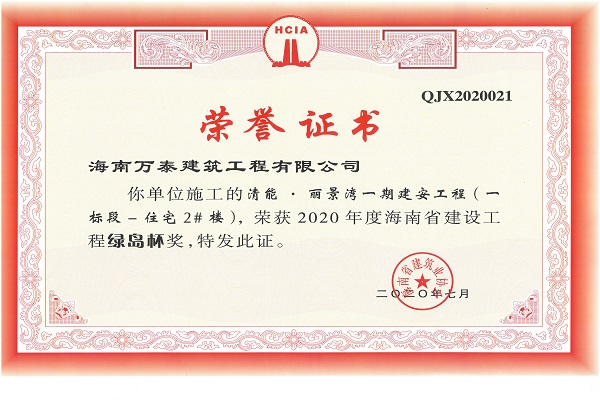 近日,由海南萬(wàn)泰建筑工程有限公司承建的清能·麗景灣一期建安工程(一標(biāo)段—住宅2#樓)榮獲2020年度海南省建設(shè)工程綠島杯獎(jiǎng),這是該項(xiàng)目獲得的又一個(gè)優(yōu)質(zhì)工程獎(jiǎng)。此前,該工程已經(jīng)獲評(píng)海口市優(yōu)質(zhì)樣板工程“椰城杯”榮譽(yù),項(xiàng)目創(chuàng)優(yōu)奪杯碩果累累。