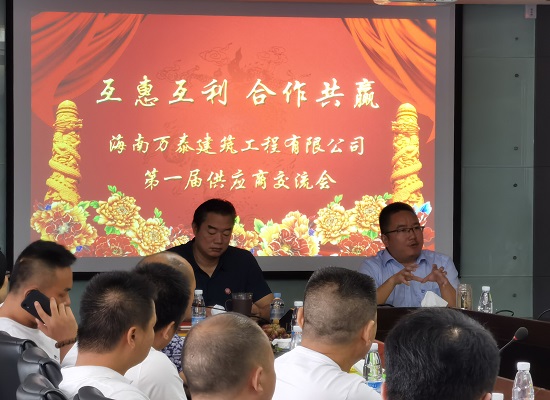 為培育并形成戰(zhàn)略認同、文化認同,共同發(fā)展、高度一致的命運共同體、利益共同體,深化合作關系,8月16日上午,海南萬泰建筑工程有限公司舉辦第一屆供應商大會暨勞務班組大會。公司常務副總顏利、副總張宇和來自全省各地的60多家優(yōu)秀供應商代表及30多家勞務班組代表共聚一堂,就進一步鞏固長期良好合作關系進行交流座談。