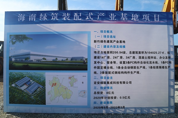 此次開工建設的海南綠筑裝配式產業(yè)基地項目,選址定安縣新竹綠色建筑產業(yè)基地,位于海南中線高速高路新竹出入口東側、省道云文線北側,在交通便利上有著無可比擬的優(yōu)勢。項目總占地面積200.94畝,總建筑面積104025.27㎡,總投資4億元,擬建設1#廠房、2#廠房、3#廠房、混凝土攪拌站、辦公及研發(fā)中心、宿舍等,設置3條PC構件自動化流水線,1條PC構件固定模臺線,1條全自動鋼筋生產線,1條輕質隔墻生產線,3條裝配式鋼結構構件生產線,2020年計劃投資0.5億元。項目建成后將大大提升定安縣新竹綠色建筑產業(yè)發(fā)展的規(guī)模效應和產業(yè)集聚效應,逐步建成具有一定規(guī)模的綠色建筑產業(yè)基地。