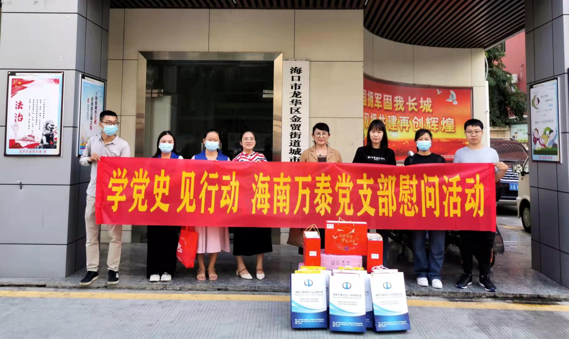值此中秋佳節(jié)來臨之際,海南萬泰借此契機,有力有序有效推進黨史學習教育落實落細,切實開展好“我為群眾辦實事”實踐活動。9月17日上午,海南萬泰黨支部聯(lián)合金貿街道工委、金貿街道商會等,在金貿街道開展“學黨史見行動”中秋慰問活動,為轄區(qū)內的世貿社區(qū)、金海社區(qū)、龍華南社區(qū)、珠江社區(qū)的7戶困難家庭送去了月餅、牛奶、水果等慰問品。
