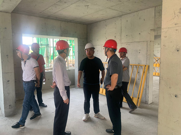 “國檢”檢查組的工作人員在張小龍總經(jīng)理的帶領下在博大·錦繡濱江工地進行實地檢查。