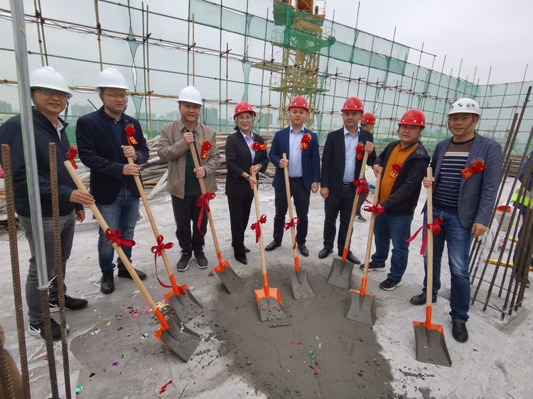 大家在做好安全防護措施后一起走上了頂樓,伴隨著禮花的炮鳴聲,共同為項目最后一塊區(qū)域澆筑混凝土,宣告了項目主體結(jié)構(gòu)封頂正式完成。