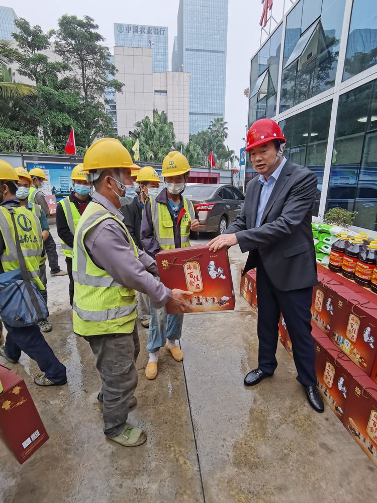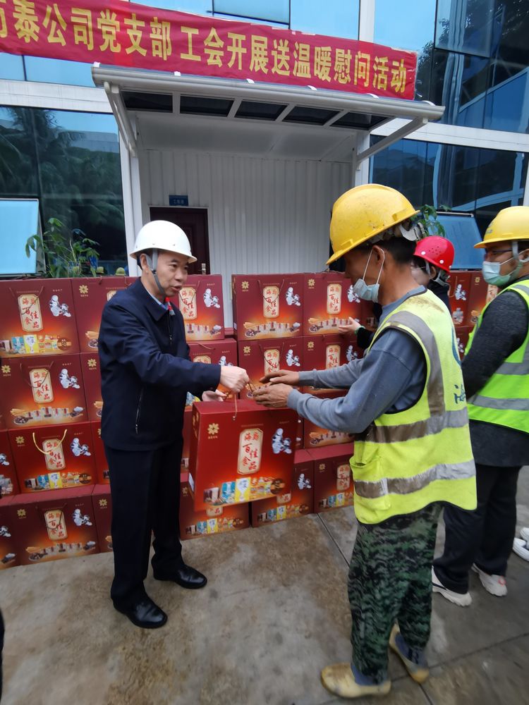 劉志偉副主席在講話中表達(dá)了對節(jié)前仍奮戰(zhàn)在崗位一線的工友們的感謝之情,他強(qiáng)調(diào),保障好職工的權(quán)益是工會組織的重要任務(wù),工會組織要始終把企業(yè)職工的生活冷暖放在心上,想職工所想,急職工所急,盡最大努力為他們辦實事、解難事,解決他們在生活中遇到的實際困難,不斷增強(qiáng)職工的幸福感和獲得感。同時,他也希望廣大工友們都能夠在海南自貿(mào)港的大背景下努力奮斗,盡職盡責(zé),共同為這片廣闊的土地添磚加瓦,打造優(yōu)質(zhì)工程,描繪宏偉藍(lán)圖。