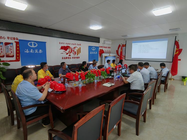 張宇副總首先對中明工程考察團(tuán)隊的到來表示熱烈歡迎,并表示集團(tuán)一直以來秉承“誠信 務(wù)實 創(chuàng)新 進(jìn)取”的企業(yè)宗旨,積極發(fā)展智慧建造,通過技術(shù)創(chuàng)新驅(qū)動工程建設(shè)的發(fā)展。BIM技術(shù)在省政務(wù)中心二期項目的實施,是海南萬泰在規(guī)范項目管理,提高生產(chǎn)效率上的重要體現(xiàn)。在“2021海南自貿(mào)港建筑業(yè)智慧建造高峰論壇暨海南省首屆BIM技術(shù)應(yīng)用大賽頒獎典禮”上,省政務(wù)服務(wù)中心二期項目榮獲海南省首屆BIM技術(shù)應(yīng)用大賽“優(yōu)秀”獎。集團(tuán)工程、黨建“兩手抓,兩手都要硬”,一方面強(qiáng)化項目管理能力,提高工程標(biāo)準(zhǔn)化水平,另一方面積極開展黨建工作,以黨建引領(lǐng)為抓手,積極推動項目各項工作的開展,讓黨旗飄揚在工地上。