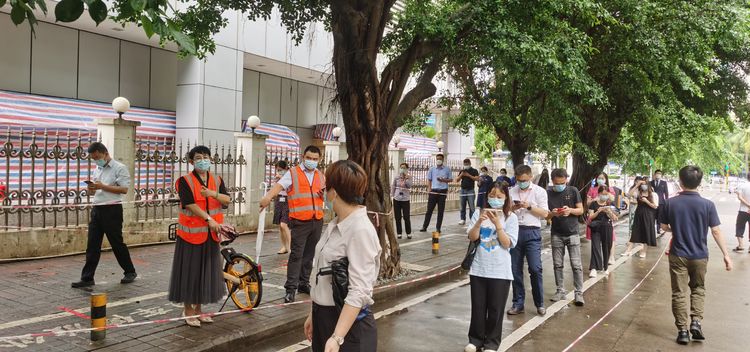 本次疫情突如其來(lái),核酸檢測(cè)工作時(shí)間緊迫,黨員志愿者們克服困難,到達(dá)指定點(diǎn)位開(kāi)展協(xié)調(diào)工作?!澳?,請(qǐng)按順序排好隊(duì),保持一米距離;請(qǐng)大家提前打開(kāi)健康碼,避免網(wǎng)絡(luò)擁堵影響檢測(cè);你看這里就可以打開(kāi)健康碼;請(qǐng)佩戴好口罩……”秩序維護(hù)、測(cè)量體溫、提供咨詢引導(dǎo)、解決群眾困難、帶領(lǐng)孕婦及行動(dòng)不便的老人走綠色通道等等,從中午到晚上,大家各司其職,與醫(yī)務(wù)人員并肩作戰(zhàn),為檢測(cè)現(xiàn)場(chǎng)“保駕護(hù)航”,贏得了群眾的認(rèn)可與好評(píng)。