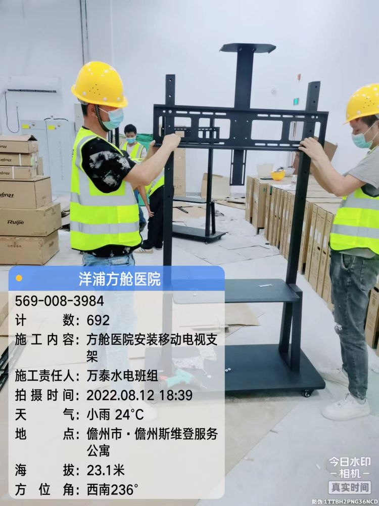 支援隊到達(dá)現(xiàn)場后,迅速進(jìn)入“戰(zhàn)斗狀態(tài)”,搬運、開槽、彈線、分線、安裝等各道工序快速展開。放眼望去,盡是忙碌的身影。大家步履匆忙,但眼神堅定,臉上汗珠密布,但無心擦拭,每一個人都在和疫情賽跑,和時間賽跑,為生命勠力同心。