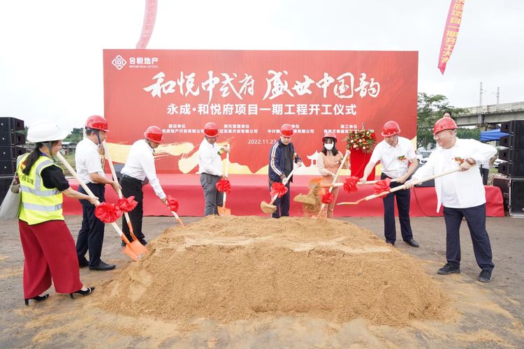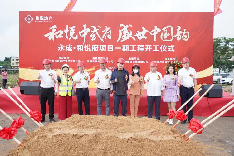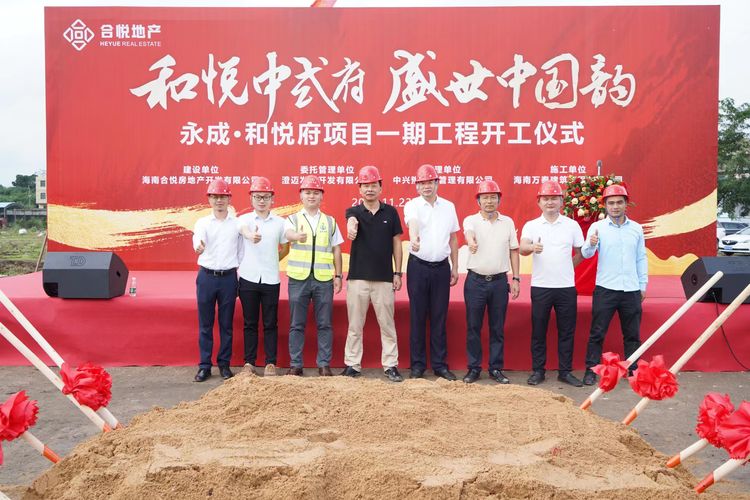 隨后,建設(shè)單位海南合悅房地產(chǎn)開發(fā)有限公司楊總正式宣布永成?和悅府項(xiàng)目(一期)開工。伴隨著隆隆的禮炮聲,楊總、顏總等相關(guān)領(lǐng)導(dǎo)為項(xiàng)目開工培土奠基,預(yù)祝項(xiàng)目開工大吉。
