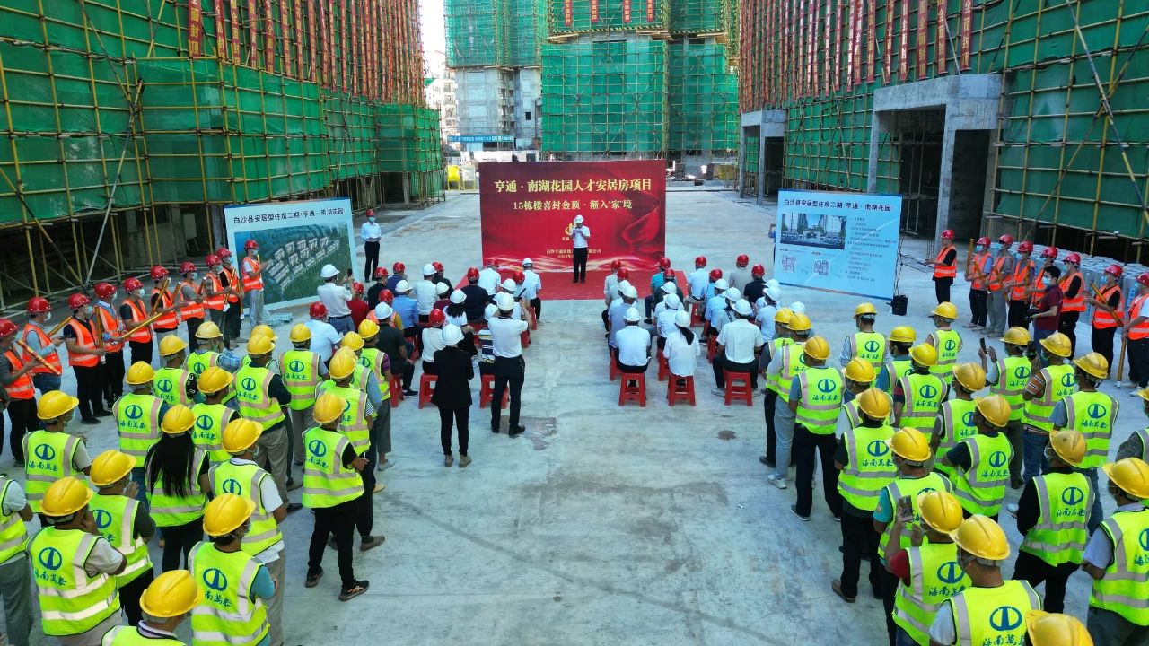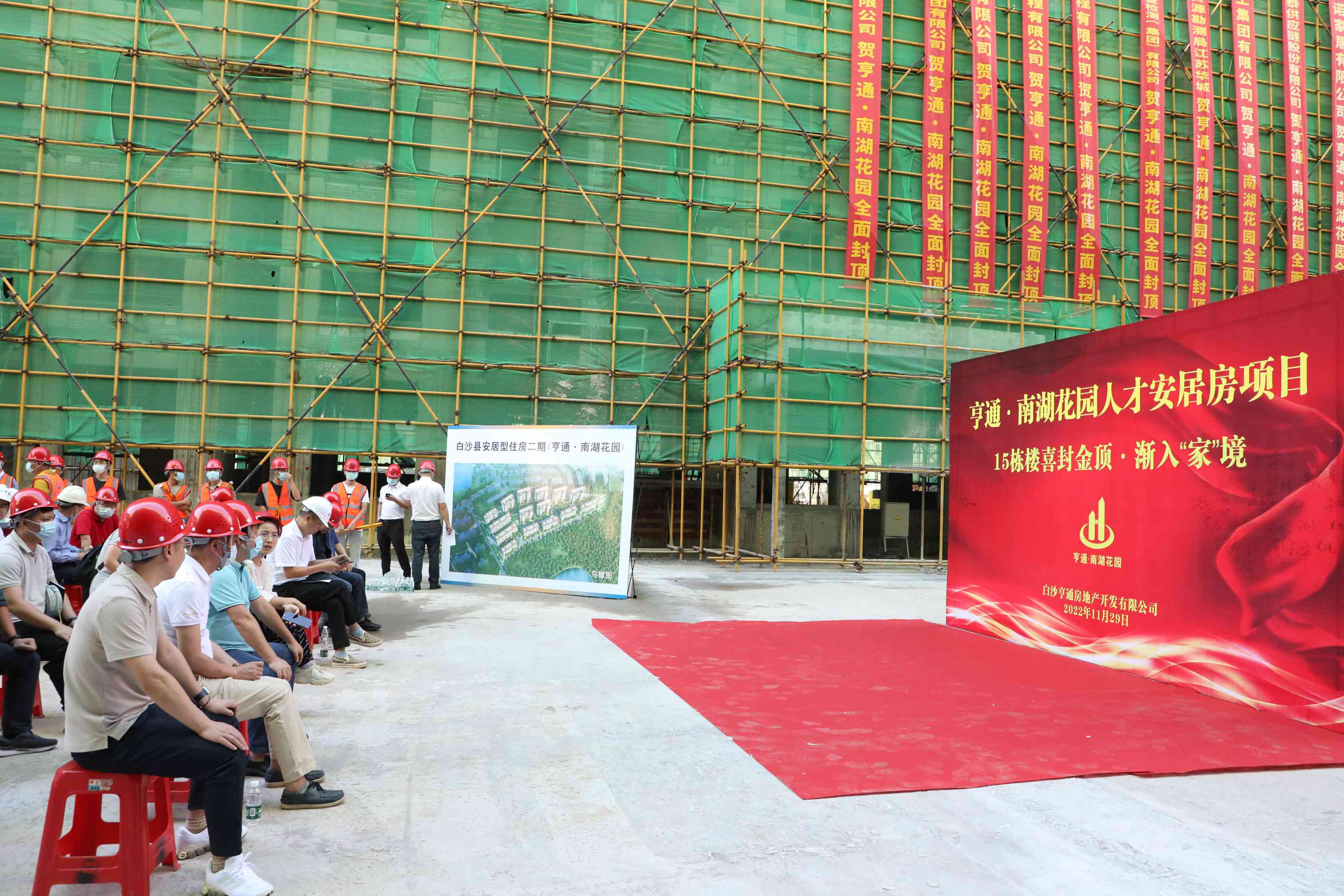 為了貫徹落實(shí)黨的二十大精神,加快推進(jìn)白沙重點(diǎn)民生工程建設(shè),致力于打造宜居新生活,2022年11月29日,由海南萬(wàn)泰建筑工程有限公司承建的省重點(diǎn)安居房項(xiàng)目——白沙亨通·南湖花園項(xiàng)目主體結(jié)構(gòu)全面封頂儀式圓滿舉行。白沙縣住建局、審批局、資規(guī)局、不動(dòng)產(chǎn)中心及融媒體中心相關(guān)負(fù)責(zé)人,亨通安居集團(tuán)董事長(zhǎng)周金華,萬(wàn)泰公司副總經(jīng)理張宇、工程部部長(zhǎng)侯領(lǐng)等有關(guān)人員參加本次封頂儀式,一同見(jiàn)證這一喜慶時(shí)刻。儀式由亨通安居集團(tuán)經(jīng)理冼繼利主持。