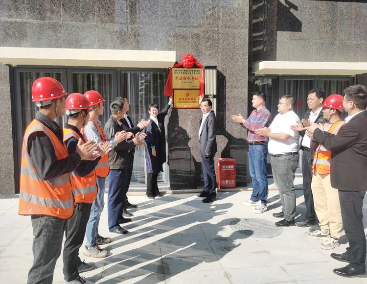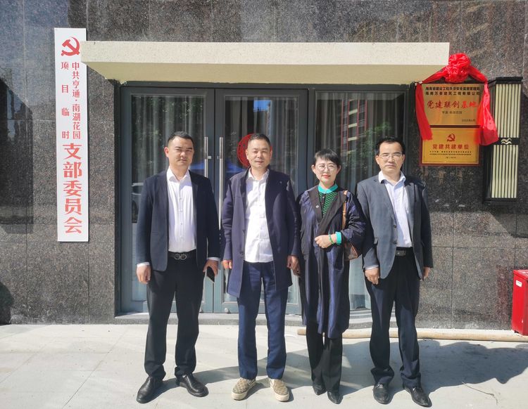 當(dāng)日上午,海南萬泰公司黨支部、工程部,白沙亨通集團(tuán)董事長周金華、亨通·南湖花園項(xiàng)目臨時(shí)黨支部書記何承中、項(xiàng)目總負(fù)責(zé)人劉普等有關(guān)人員共同為黨建聯(lián)建共創(chuàng)基地進(jìn)行揭牌。