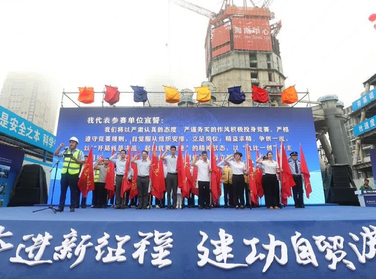 為充分發(fā)揮工人階級(jí)主力軍作用,積極組織公司職工參與企業(yè)發(fā)展事業(yè),為海南自貿(mào)港建設(shè)做貢獻(xiàn),2023年3月30日,由海南省總工會(huì)、海南省住房和城鄉(xiāng)建設(shè)廳、海南省營(yíng)商環(huán)境建設(shè)廳、海南省公安廳等單位聯(lián)合主辦,海南省農(nóng)林水利交通建設(shè)工會(huì)、海南省建設(shè)工會(huì)、中建三局集團(tuán)有限公司承辦的“奮進(jìn)新征程、建功自貿(mào)港”2023年海南省行業(yè)性勞動(dòng)和技能競(jìng)賽啟動(dòng)儀式在海南中心項(xiàng)目工地全面啟動(dòng),省總工會(huì)主席陸志遠(yuǎn)、省住建廳副廳長(zhǎng)林詩輝等相關(guān)單位領(lǐng)導(dǎo)出席活動(dòng)。