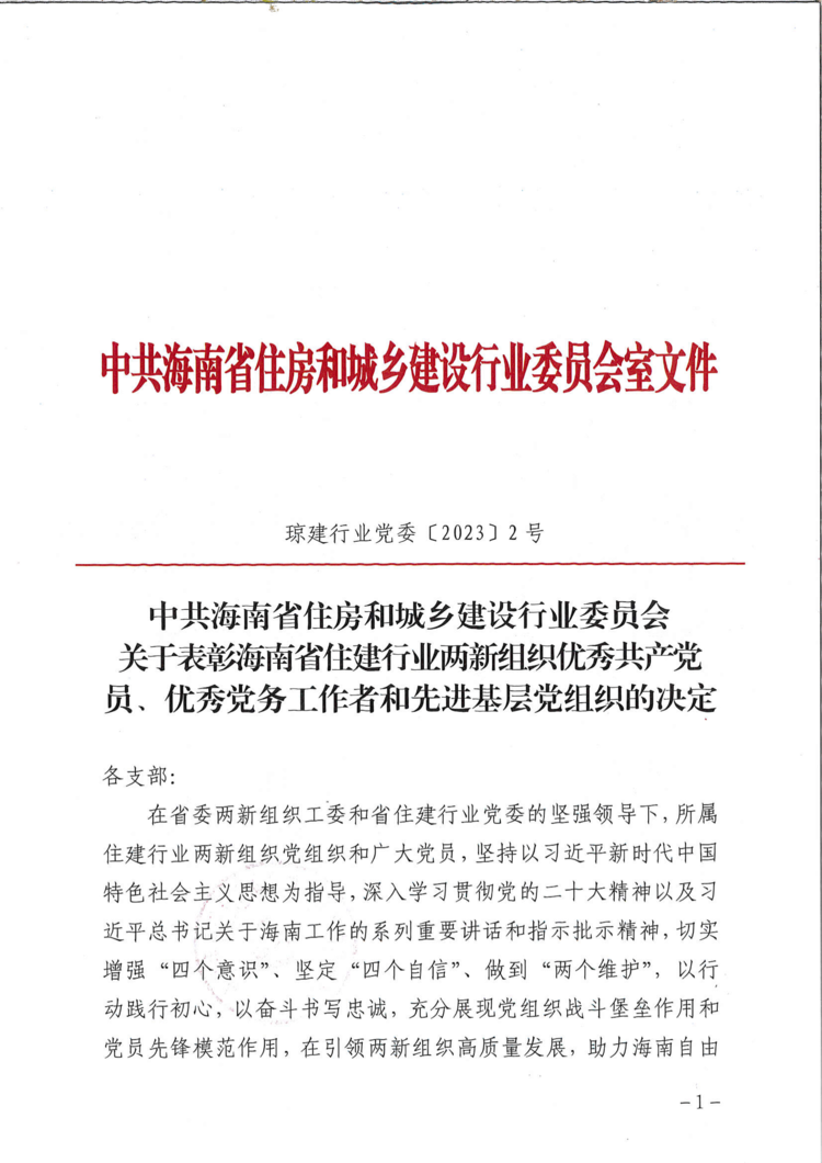 盛夏七月,喜事連連。在慶祝中國(guó)共產(chǎn)黨成立102周年之際,根據(jù)海南省住建行業(yè)黨委《關(guān)于表彰海南省住建行業(yè)兩新組織優(yōu)秀共產(chǎn)黨員、優(yōu)秀黨務(wù)工作者和先進(jìn)基層黨組織的決定》的通知,海南萬(wàn)泰建筑工程有限公司黨支部喜獲2021-2022年度“海南省住建行業(yè)兩新組織先進(jìn)基層黨組織”榮譽(yù)稱號(hào);公司黨支部的3名黨員同志分別喜獲2021-2022年度海南省住建行業(yè)兩新組織“優(yōu)秀共產(chǎn)黨員”以及“優(yōu)秀黨務(wù)工作者”榮譽(yù)稱號(hào)。