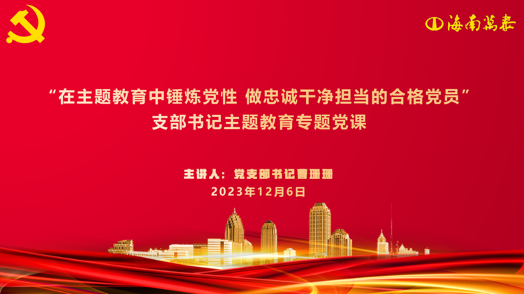 通過開展本次主題教育暨書記講黨課活動,提升了與會人員的黨性修養(yǎng),也堅(jiān)定了大家對開展好主題教育的信心與決心。下一步,海南萬泰黨支部將繼續(xù)引導(dǎo)廣大黨員群眾不斷增進(jìn)對習(xí)近平新時代中國特色社會主義思想的政治認(rèn)同、思想認(rèn)同、理論認(rèn)同、情感認(rèn)同,筑牢信仰之基、補(bǔ)足精神之鈣、把穩(wěn)思想之舵,努力為海南自貿(mào)港建設(shè)以及企業(yè)高質(zhì)量發(fā)展作出新的貢獻(xiàn)。