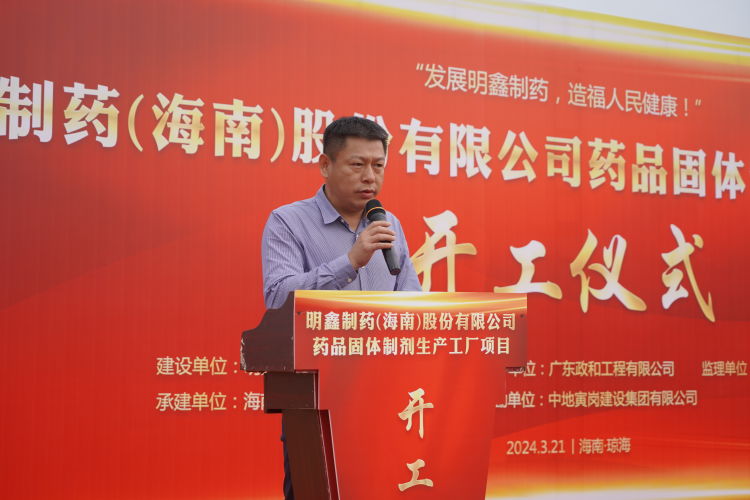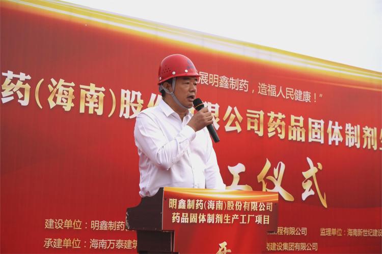明鑫制藥海南公司董事長金佳樂在致辭中表示該項目建成后將進一步提升瓊海市醫(yī)藥服務(wù)水平,希望各參建單位都能夠齊心協(xié)力推進項目建設(shè),高標(biāo)準(zhǔn)、高質(zhì)量完成既定施工任務(wù),助力海南自貿(mào)港發(fā)展。