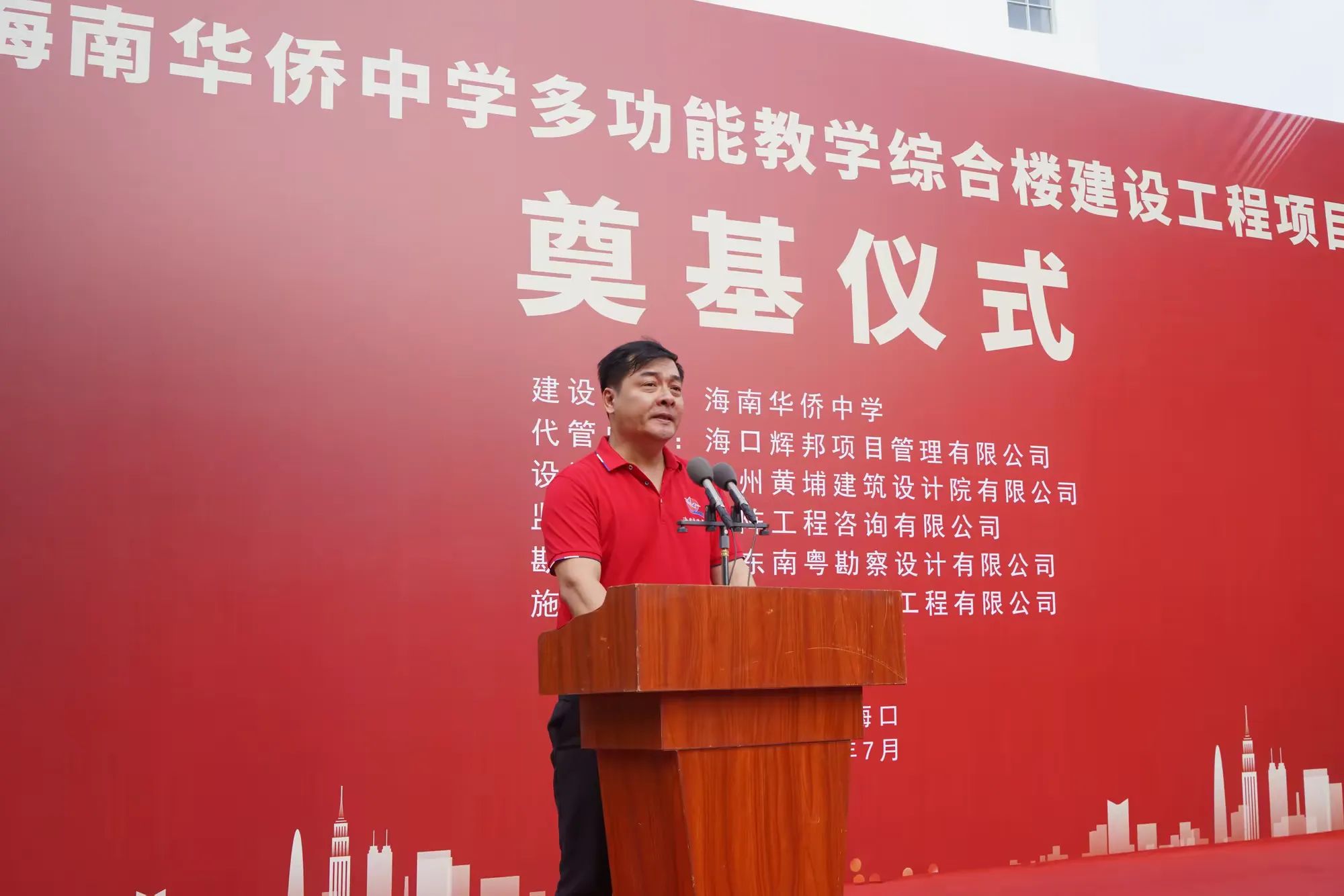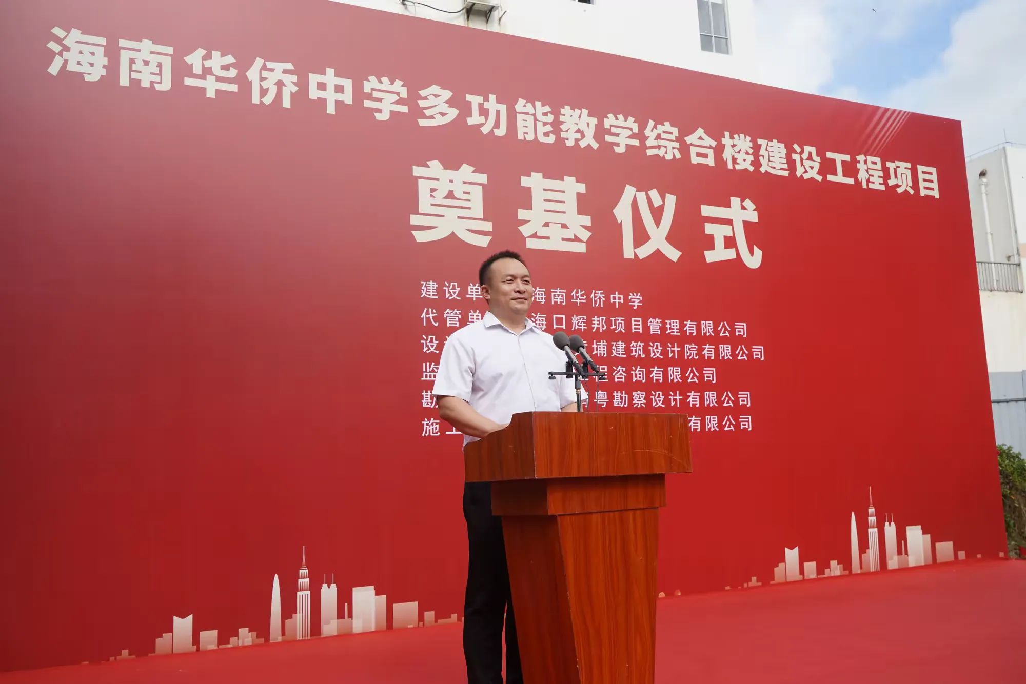 ??谑邪l(fā)改委黨組成員、副主任莊華東宣布海南華僑中學(xué)多功能教學(xué)綜合樓建設(shè)工程項(xiàng)目開(kāi)工。隆隆的禮炮聲與掌聲預(yù)祝著項(xiàng)目開(kāi)工大吉。