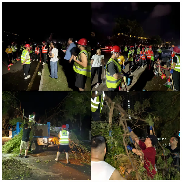 9月8日晚8時,在政府的號召和公司領導的發(fā)動下,廣大黨員職工主動請纓,報名參加災后清障活動。當晚,40名公司支部黨員干部、職工組成了志愿服務隊,并多方調配輪式挖機2臺、運輸車3輛、抓機1臺以及油鋸、掃把等一批小型工具趕赴國興大道開展路面清障工作,你鋸樹、他搬運、我掃地,大家各司其職,默契地參與到這次工作中。至凌晨2時,萬泰公司所負責區(qū)域的清障工作順利完成,路障問題已經良好解決,他們以實際行動詮釋著黨員的先鋒模范作用。