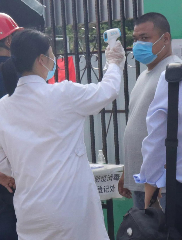 對一線建設(shè)者逐一進行消毒