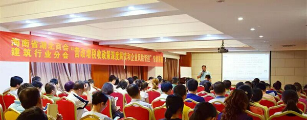 2016年4月16日,海南省湖北商會(huì)、海南省湖北商會(huì)建筑行業(yè)分會(huì),聯(lián)合尤尼泰(海南)稅務(wù)師事務(wù)所在??谙憬瓬厝獓?guó)際大酒店共同舉辦了“營(yíng)改增稅收政策深度解讀和企業(yè)風(fēng)險(xiǎn)管控”專題講座。海南萬泰建筑工程有限公司總經(jīng)理、海南省湖北商會(huì)建筑行業(yè)分會(huì)秘書長(zhǎng)張小龍參加并主持了本期講座。