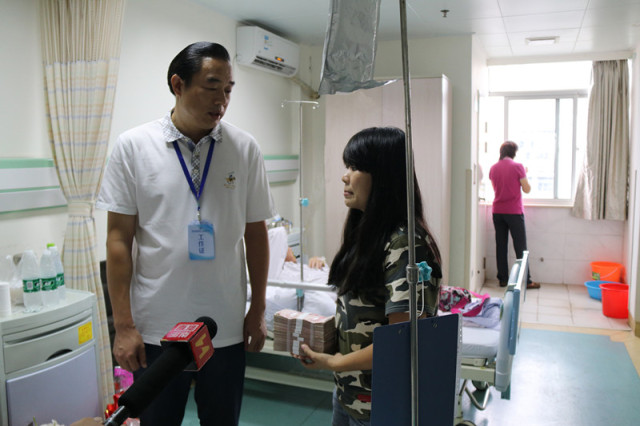 “這是萬泰公司張總和同事們的一點(diǎn)心意,小鄭,祝你愛人早日康復(fù),希望萬泰這個大家庭能更多的幫助你們這個小家庭渡過難關(guān),也期盼你早日重返工作崗位……”2016年7月14日下午,海南萬泰建筑工程有限公司常務(wù)副總顏利,代表萬泰公司張總及全體員工到海南省人民醫(yī)院看望萬泰員工鄭琳及患病家屬曾維龍,并送上萬泰張總及全體員工的十萬元愛心捐款。海南省電視臺直播海南節(jié)目全程報(bào)道。