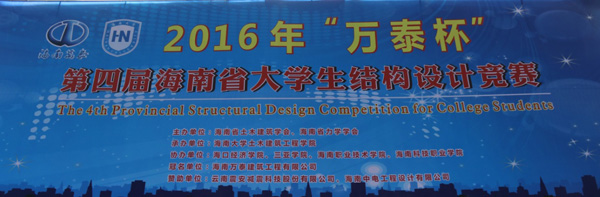 2016年5月28日早8點(diǎn),由海南萬(wàn)泰建筑工程有限公司贊助并冠名的“萬(wàn)泰杯”第四屆海南省大學(xué)生結(jié)構(gòu)設(shè)計(jì)大賽在海南大學(xué)聯(lián)誼館拉開了序幕。