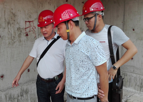4月14日下午,萬(wàn)泰公司總工程師鄒進(jìn)安、工程部主任秦啟武帶領(lǐng)工程部、總工辦、辦公室部分員工到公司瓊海在建項(xiàng)目信達(dá)?銀海御湖工地現(xiàn)場(chǎng)檢查工作。項(xiàng)目部管理人員邱總、程總等陪同參加了本次季度質(zhì)量安全檢查。